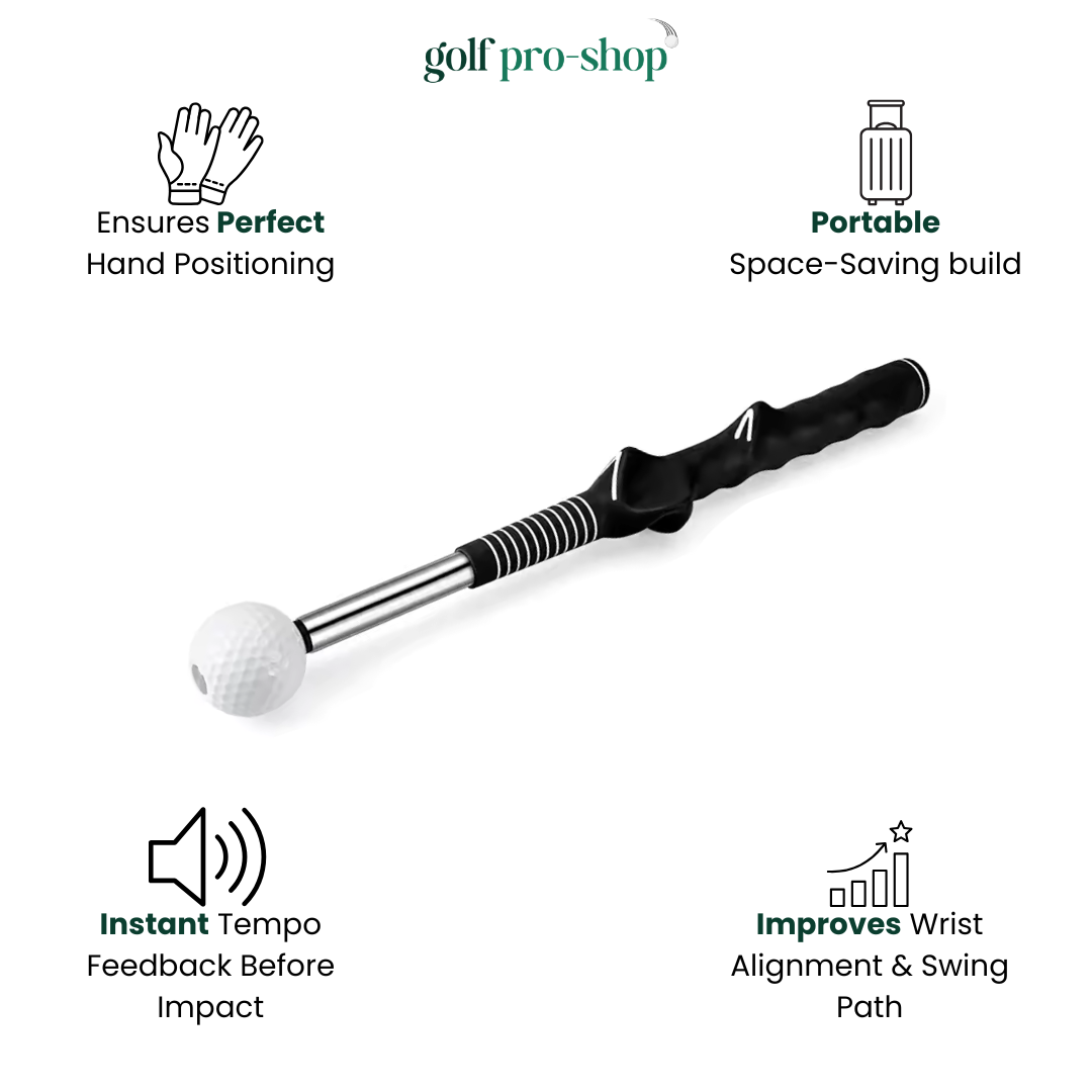 The trainer features a molded grip that teaches correct hand placement automatically, while the internal tempo click lets you know when you’ve hit peak swing speed for more power and consistency. Its compact telescopic design makes it easy to use anywhere—even indoors—so you can train without needing space. Built to feel like a real club, it delivers an authentic, natural swing motion that builds true muscle memory you can take straight to the course.
